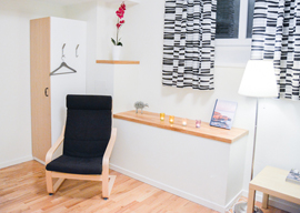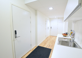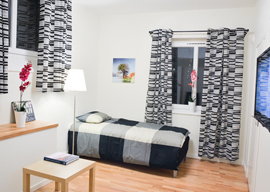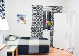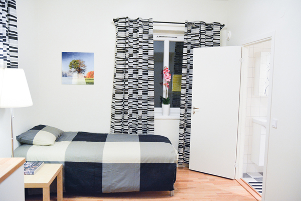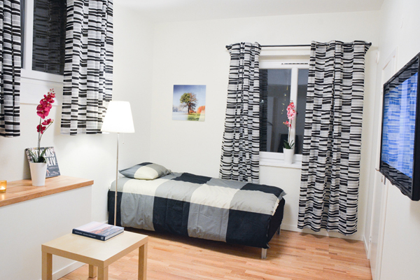 This room have underfloor heating, one bed incl. 5cm bed mattress and mattress cover, wardrobe, armchair, table, 40 inch flat screen televisions with channels 1an, 2an 4an 6an, SvT 24 and Knowledge Channel.